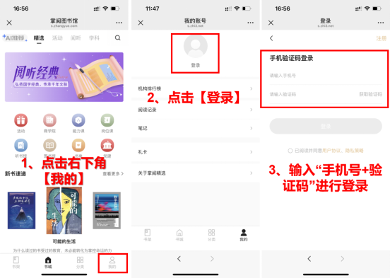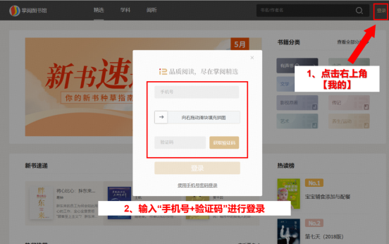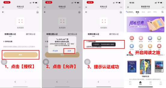 【访问方式】掌阅精选实行位置授权注册,在学校范围内手机号+验证码登录注册访问,注册完成后不受地址位置限制。