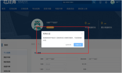 第三步:账号注册后,选择认证机构,弹出机构认证页面,点击【快捷认证】或选择/检索【中南大学】实现认证后开启阅读学习之旅。